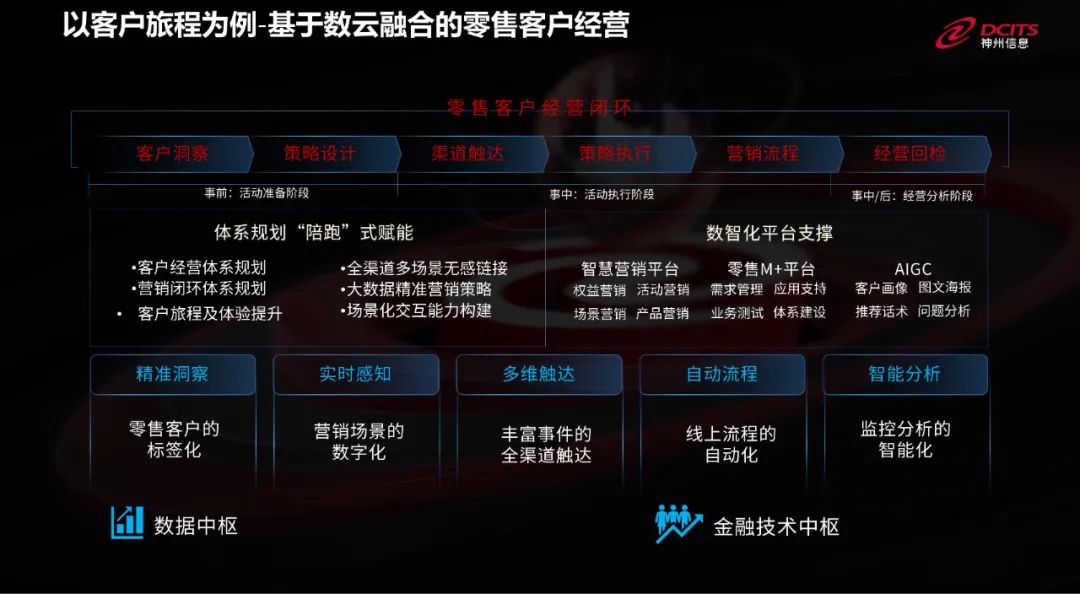 作为金融机构中枢—数据资产价值发挥的核心引擎“六合上甲”,激发数据资产本身及应用的潜在价值。在数据中台上,数据资产的各个要素得以沉淀,这有助于实现数据资产的最大化利用。此外,数据中台还涉及数据的应用,包括与供应链、产业、客户理解等方面的整合,以及对零售和对公业务的支持。